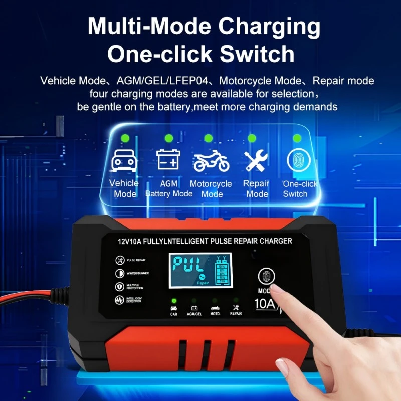 STARWELL presenterar stolt sin 12V 10A multifunktionella intelligenta batteriladdare, en högpresterande smart laddningslösning designad för att leverera säker, effektiv och mångsidig laddning för ett brett utbud av 12V-batterier. Som en professionell intelligent batteriladdare, integrerar den avancerad mikroprocessorteknik för att övervaka och justera laddningsprocessen i realtid, vilket gör den idealisk för bil-, marin-, husbils- och hemmabruk, lämplig för både blysyra-, AGM-, Gel- och LiFePO4-batterier.