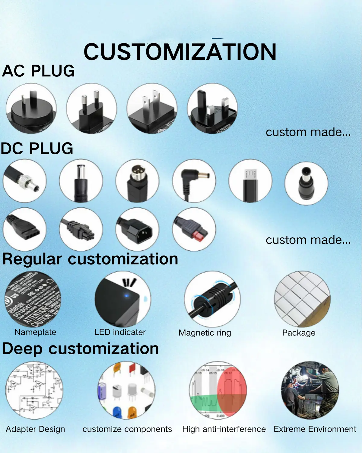 Vi är en AC/DC-strömförsörjningsfabrik som kan anpassa vilken strömadapter som helst och klara relevanta certifieringar.