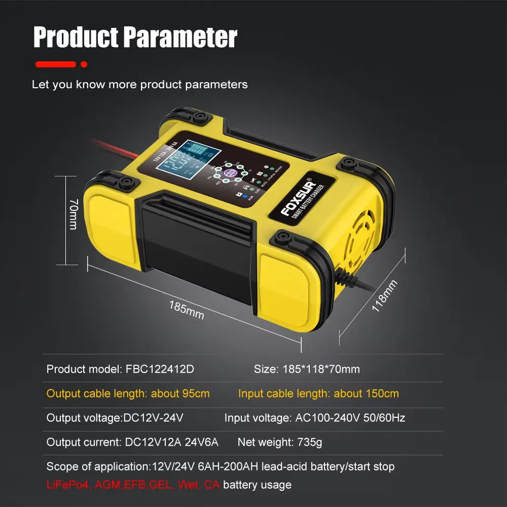 12V 24V 12A 7-segments intelligenta blybatteriladdare från Starwell är konstruerad för att möta de höga kraven på laddning av blysyrabatterier. Som en ledande tillverkare och leverantör från Kina, är Starwell specialiserat på att tillhandahålla laddare av överlägsen kvalitet som ger enastående prestanda och tillförlitlighet. Denna laddare är utrustad med toppmoderna funktioner som gör den till det perfekta valet för fordons-, industri- och fritidsapplikationer.