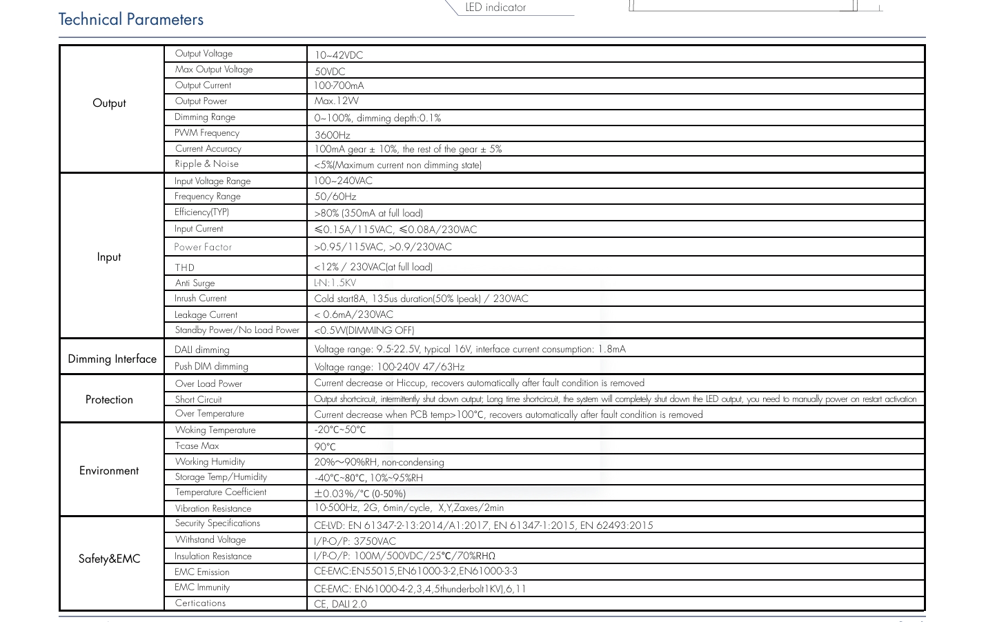 Intelligent skydd och hållbarhet: Utrustad med skydd för överspänning, överbelastning, kortslutning och överhettning (110℃ trigger); 100 000 timmars livslängd vid 75 ℃.