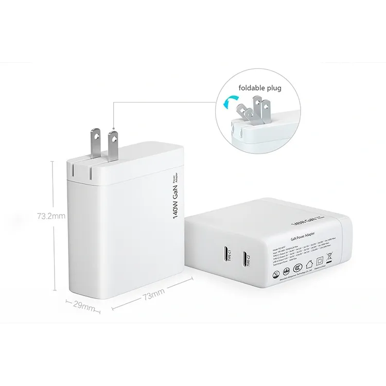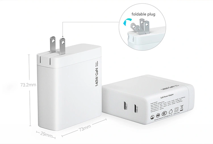 140W dubbel usb c-port PD Laddare USA-kontakt hopfällbar Specifikation: