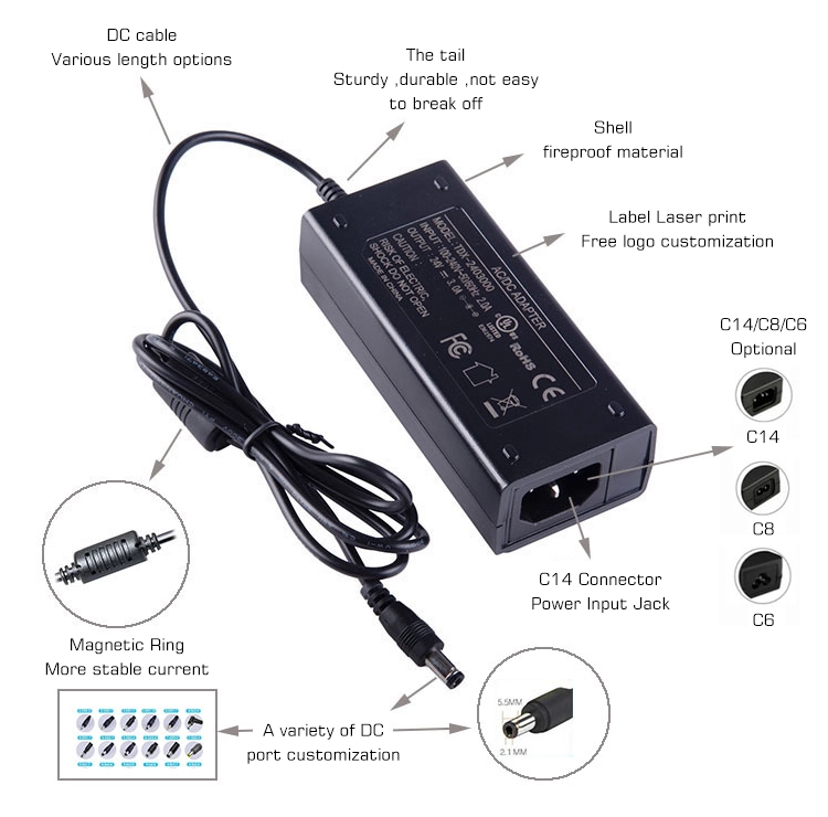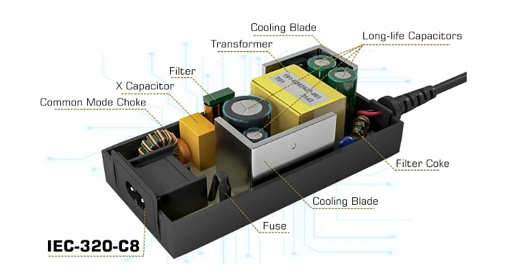 STARWELL 150W stationära nätadapter har en IEC C6 standard strömingångsport och en 5,5*2,1 mm DC utgångskontakt – som fungerar som en professionell strömlösning för högeffektsenheter. Spänningsutmatningsnoggrannheten för 150W AC/DC-strömadapter är så hög som ±2% och effektomvandlingseffektiviteten överstiger 90%. Den har godkänt CE- och FCC-certifieringar för att garantera säkerheten. STARWELL-strömadaptern är idealisk för att driva enheter i kontors-, underhållnings- och kommersiella scenarier, det är ett kostnadseffektivt alternativ till originaladaptrar eller en expansion för strömbehov för flera enheter.