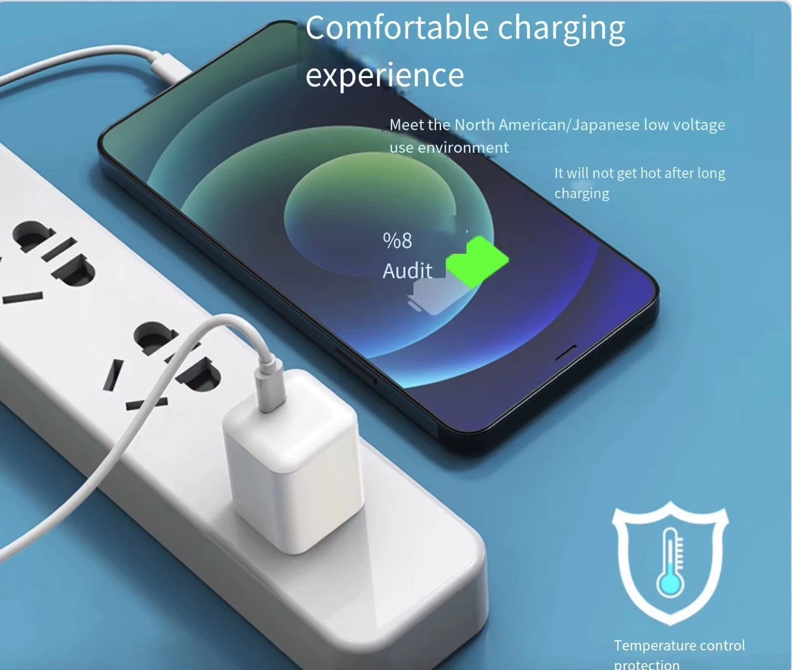 Vår mobiltelefonladdare: Överström, överspänning, kortslutning, höguppvärmning, åldringstest, 12-24 timmars spraysalttest. |