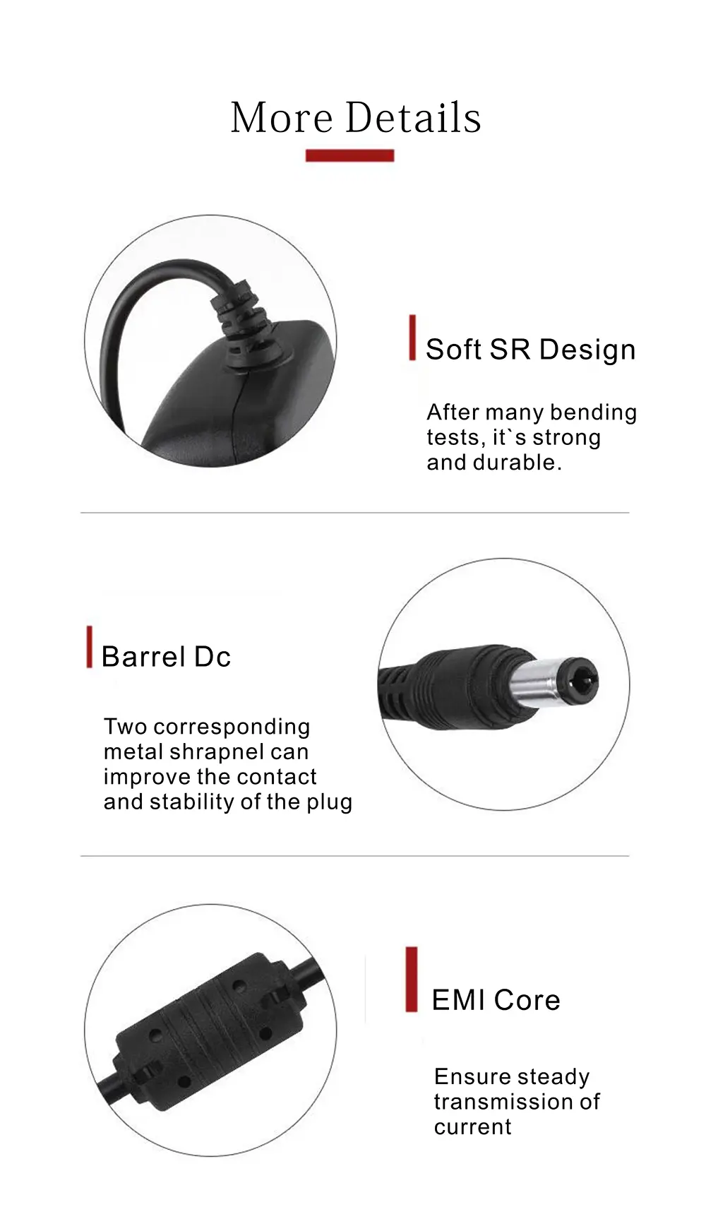 3. Anslutningspassning: Kontrollera att kontaktens storlek (t.ex. 5,5 mm x 2,1 mm) och polariteten (ofta i mitten positiv) matchar enhetens DC-uttag. En felaktig matchning kan orsaka skada.