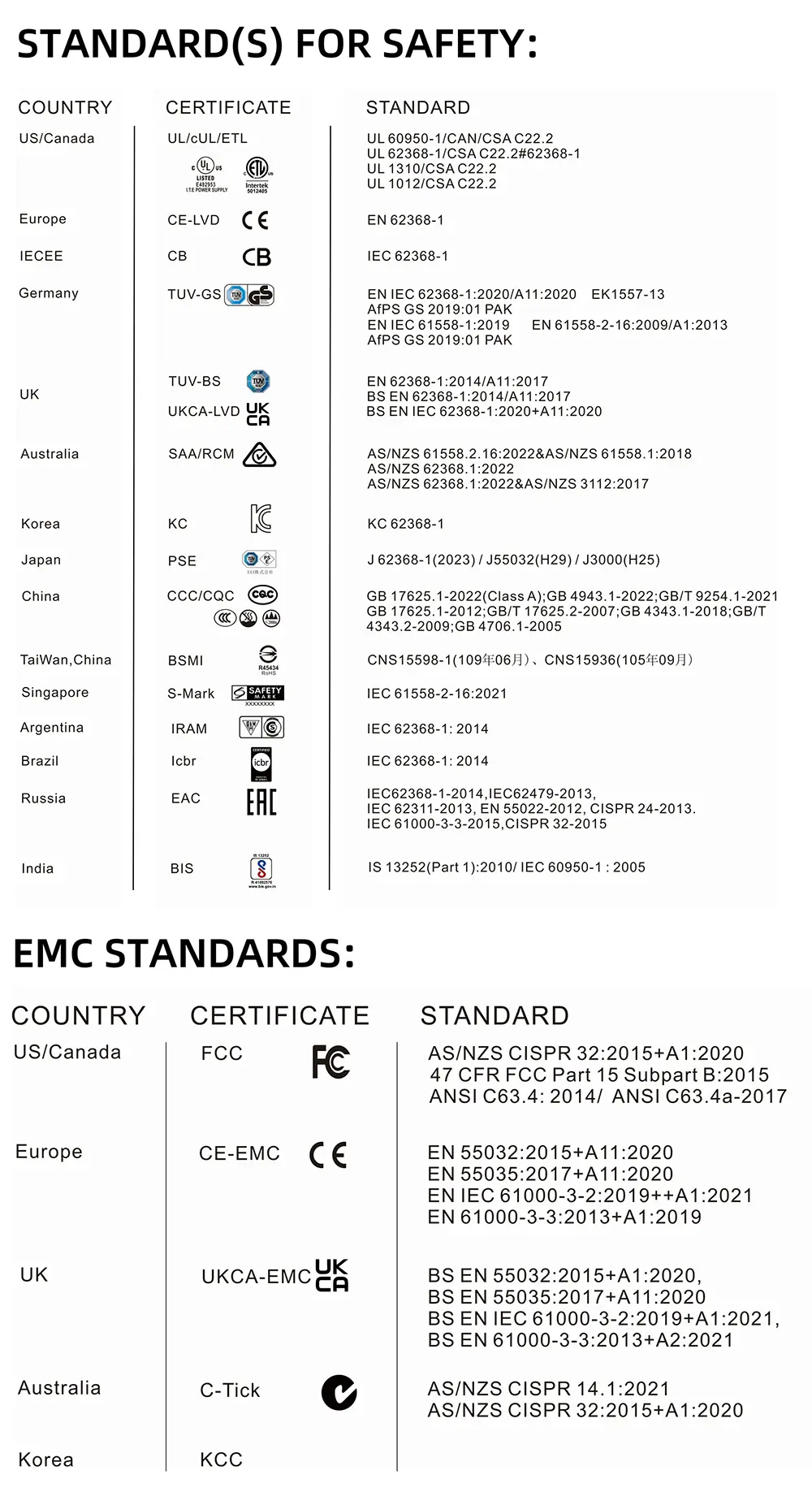 ETL CE FCC CB CB CB KCC KCC BIS BIS RCC CCC CCC CCC CCC CCC CCC CCUL RoHS RoHS |