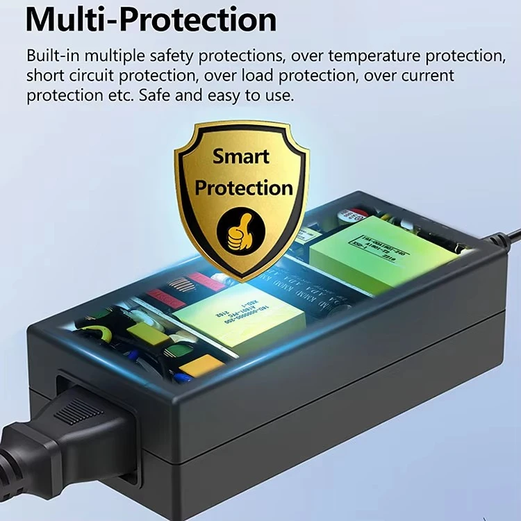 Starwell hållbar 24V 7,5A universell stationär strömadapter har hög konverteringseffektivitet, minimalt rippel och brus och utmärkt spänningsreglering under varierande belastningar. Huset säkerställer effektiv värmeavledning och hållbarhet. Omfattande skyddskretsar skyddar mot överspänning, överström, kortslutning och överhettning, vilket ökar säkerheten för utrustning och användare.