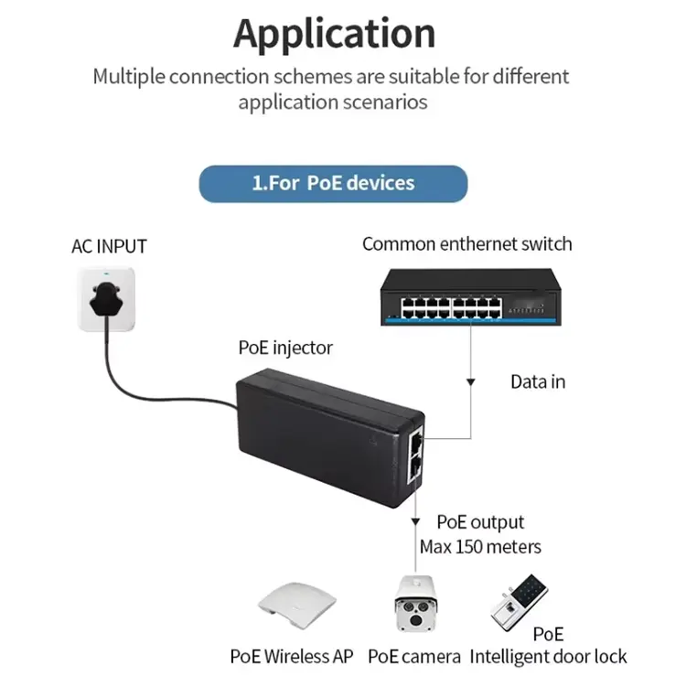 Denna 24V 1A Gigabit passiva POE-injektor används ofta i: