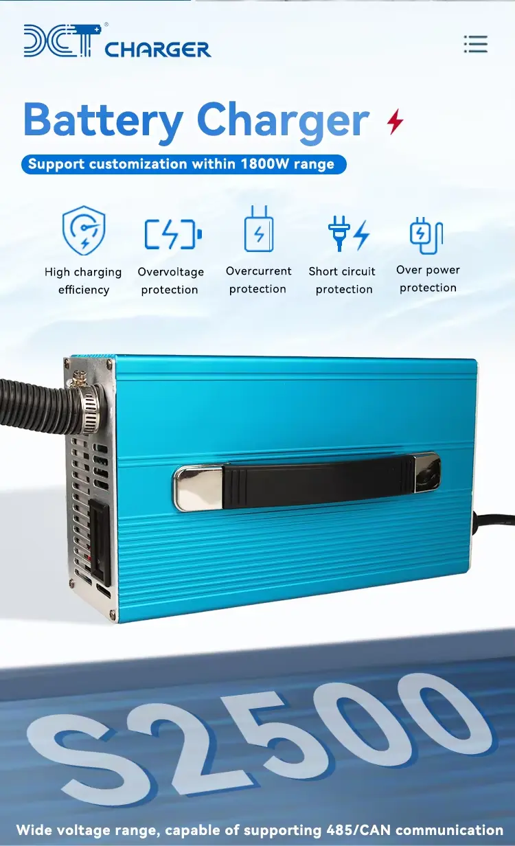 Med en robust, kompakt struktur och bra värmeavledning är den lämplig för elfordon, industriella rengöringsmaskiner, energilagringssystem, AGV:er och marinutrustning. Den överensstämmer med internationella säkerhetscertifieringar och stöder anpassade kontakter och märkning. Genom att kombinera hög effektivitet, stabilitet och hållbarhet är denna laddare ett idealiskt val för 24V batterisystem med medelstor till stor kapacitet.