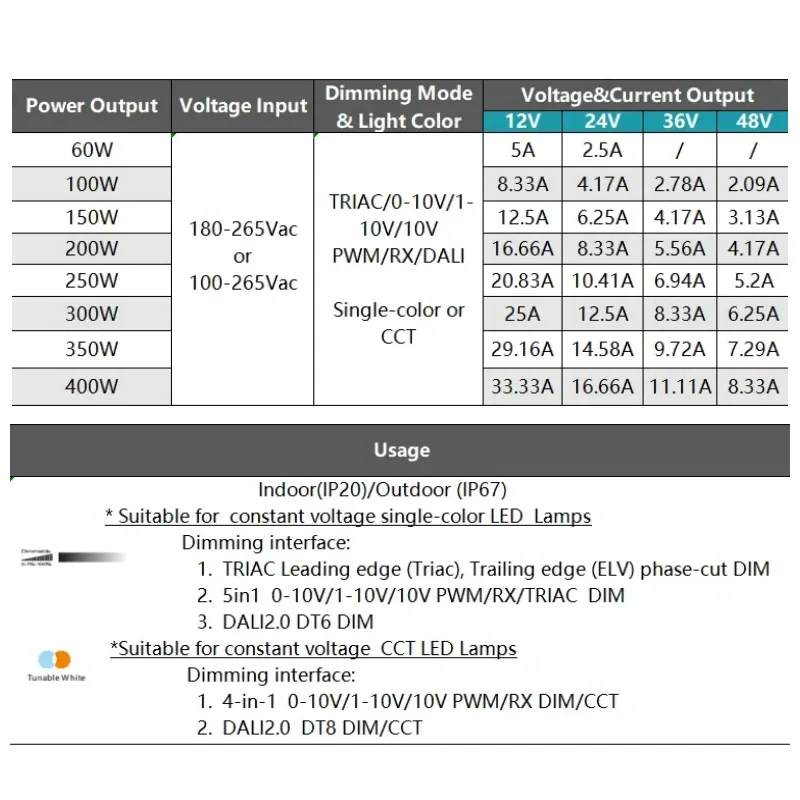 100W DALI Constant Voltage CCT Dimming LED Driver