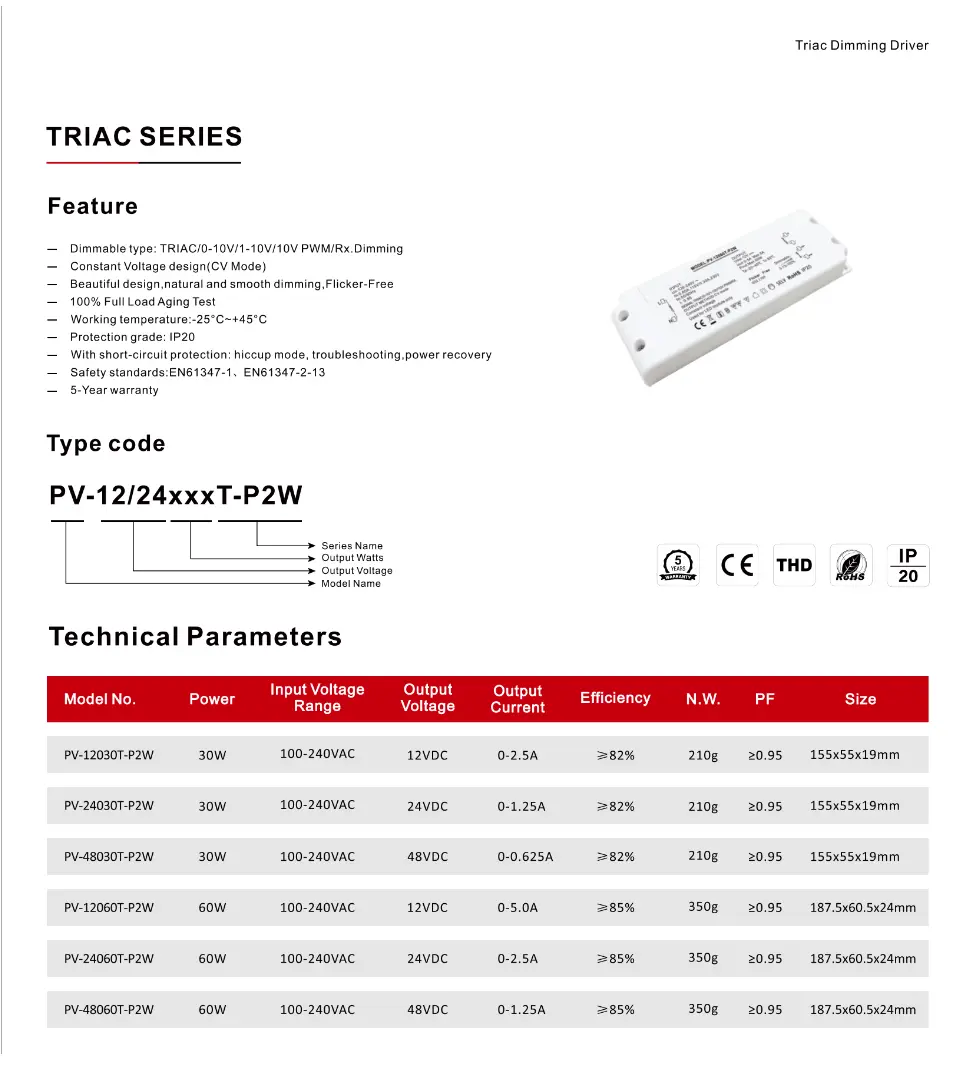 TRIAC 0-10V dimbar 30W konstant spänning strömförsörjning, Starwell erbjuder 5 års garanti för långsiktig kvalitetssäkring. Dess kärnkomponenter är alla tillverkade enligt industriella standarder, med utmärkt överspänningsmotstånd, uthållighet vid höga temperaturer och långvarig driftsäkerhet. Denna 30W konstantspänning TRIAC-dimning LED-drivrutin, som integrerar dual-mode dimming, konstant spänningsutgång, flimmerfri teknik och lång livslängd, är ett utmärkt val för dem som söker högkvalitativa ljuseffekter. Välkommen att höra av dig.