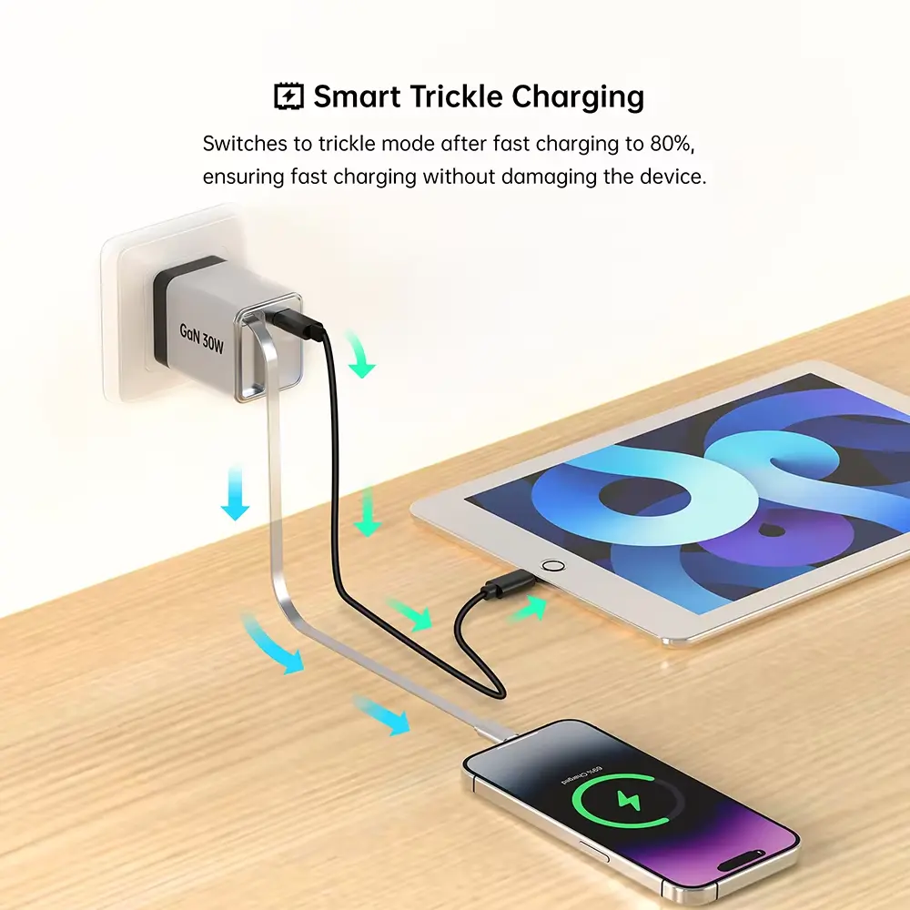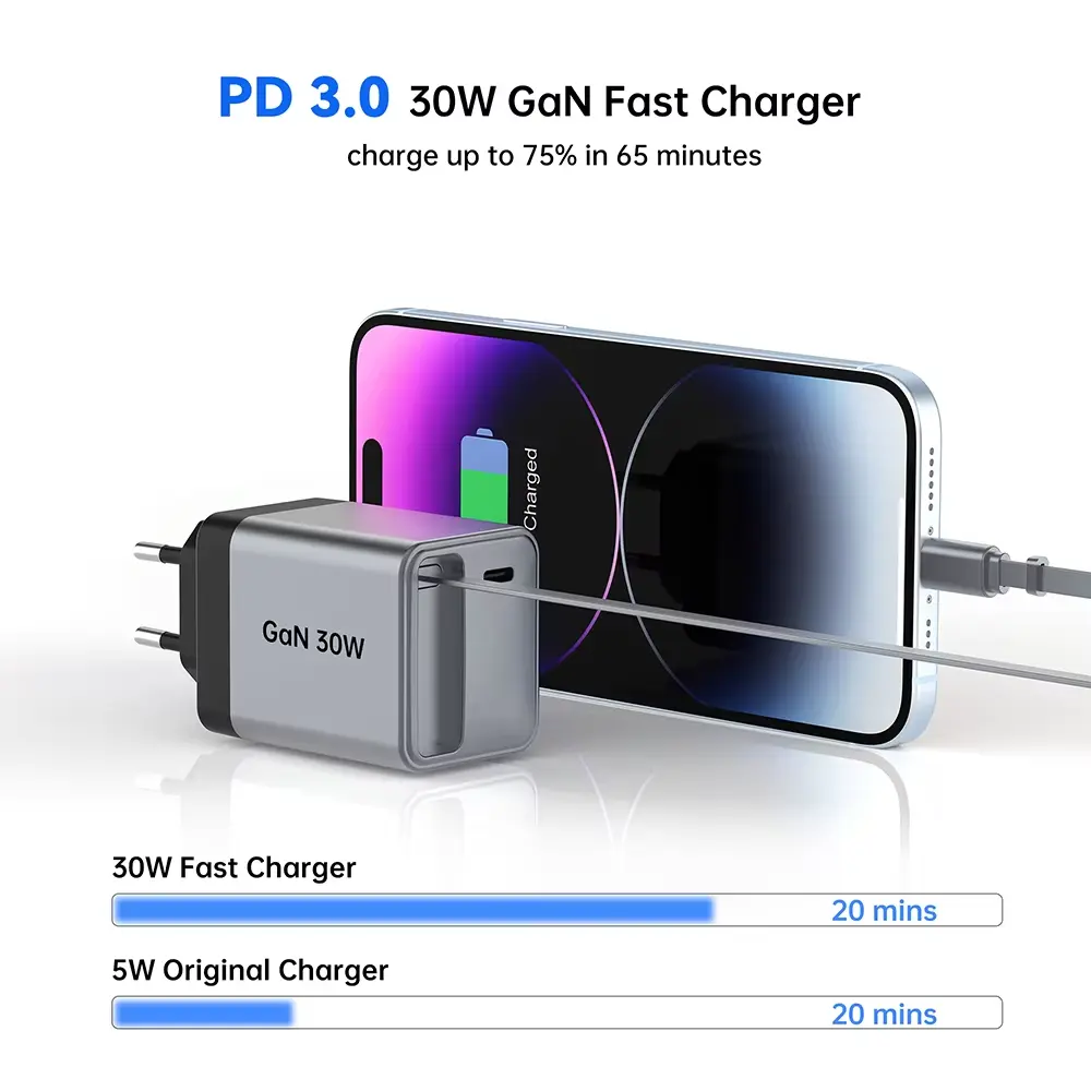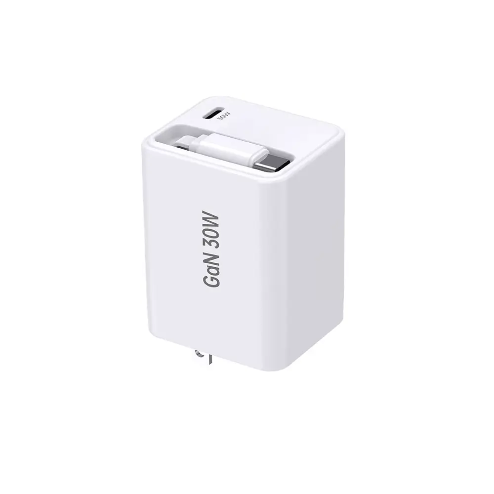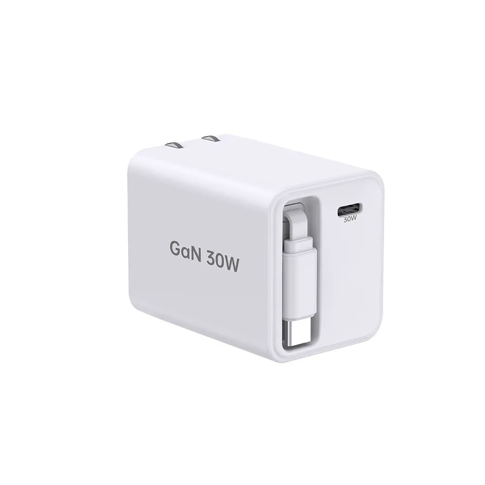 30W snabbladdare med indragbar typ C-kabels ultralätta design i fickstorlek gör den lätt att bära med sig. Det är det perfekta valet för hemmet, kontoret eller resor.