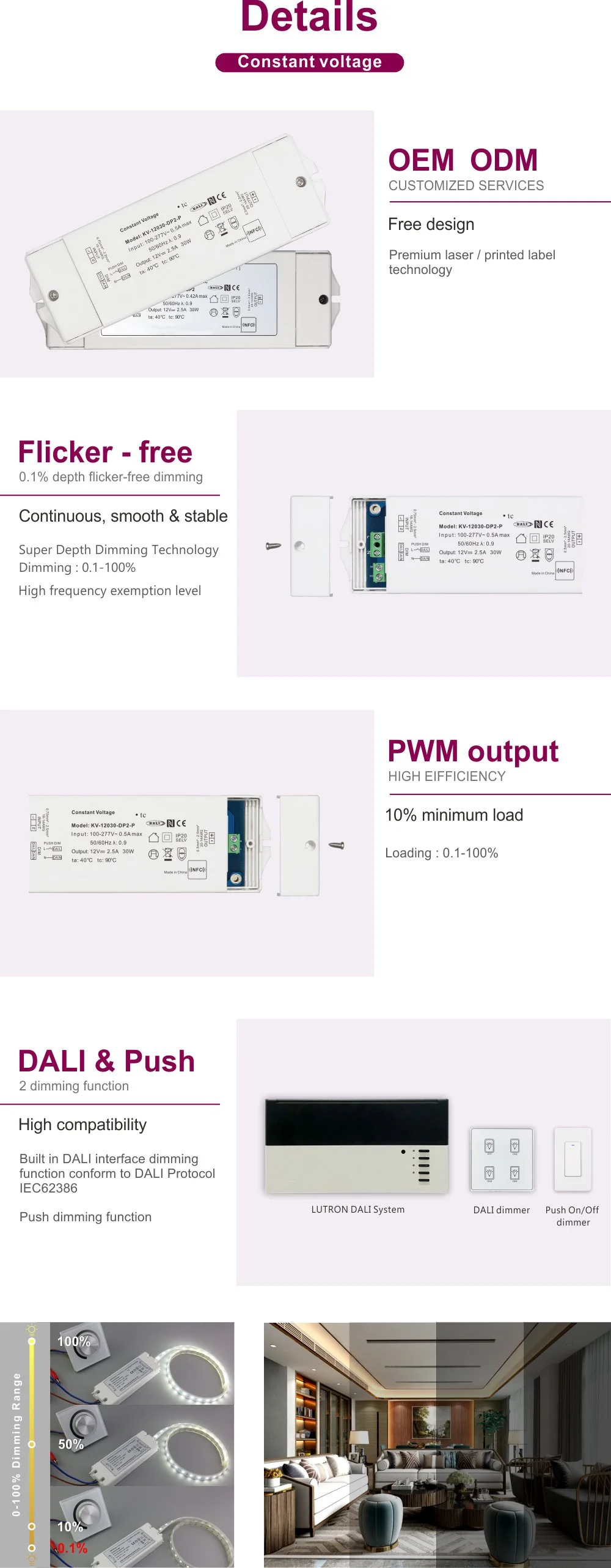 Som en professionell tillverkare av konstant spänning dali dimbara led-drivrutiner i Kina, vill Starwell ge dig högkvalitativ 36V konstant spänning 30W DALI dimbar LED-drivrutin, som är en professionell högpresterande LED-drivrutin, speciellt designad för moderna intelligenta belysningssystem. Den erbjuder en stabil och ren 36V konstant likspänningsutgång med en maximal uteffekt på 30W, perfekt matchande olika 36V lågspännings LED-remsor, moduler och lampor, vilket säkerställer en långsiktig stabil drift av belysningssystemet.