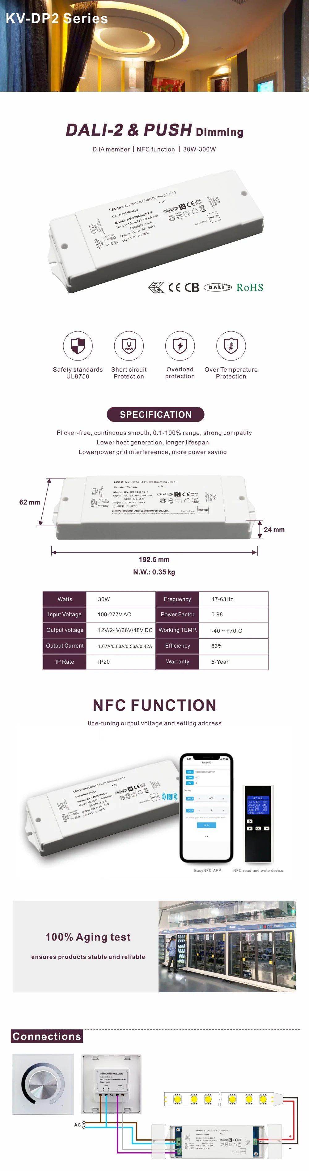 Förutom sin kraftfulla DALI-funktionalitet erbjuder denna drivrutin en enastående dimningsupplevelse. Den uppnår en silkeslen NFC Dimming Smooth No Flicker-effekt, vilket helt eliminerar synligt flimmer och skakningar även vid låga ljusstyrkanivåer, vilket effektivt skyddar synen och skapar en bekväm och hälsosam ljusmiljö. Dess breda AC-ingångsspänningsområde (100-265V ingång) gör att den kan anpassa sig till spänningsfluktuationer i elnät över hela världen, vilket säkerställer stabil drift i olika regioner.