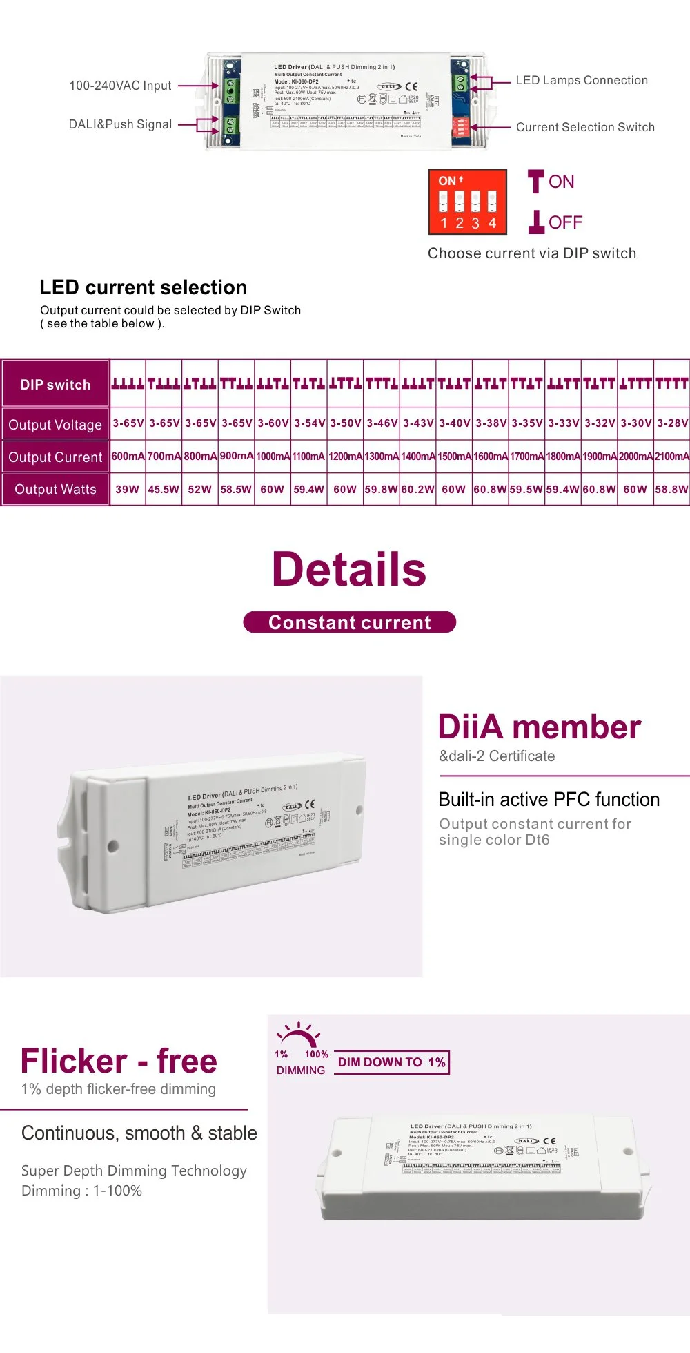 60W konstantström dali dimming CCT led drivrutin |