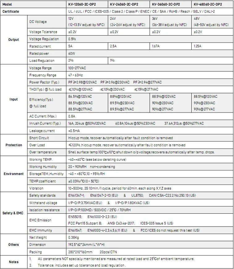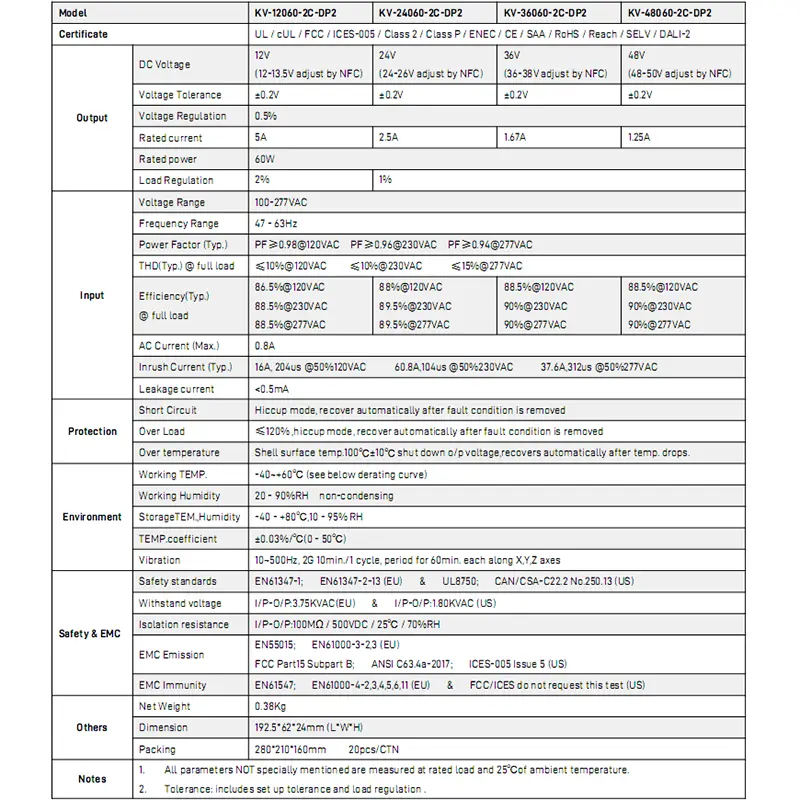Genom att använda DALI digital dimning, stöder den 0,1%-100% mjuk flimmerfri dimning och exakt CCT-justering från 2700K till 6500K, vilket håller ljusstyrkan konsekvent under färgtemperaturskiftningar. Inbyggd aktiv PFC ökar effektiviteten med upp till 88 %, med låg strömförbrukning utan belastning. Den har mjukstart, överspänning, överström och kortslutningsskydd, vilket säkerställer säker drift.