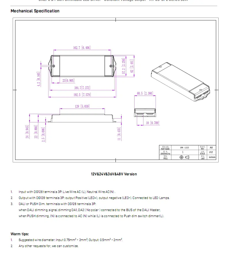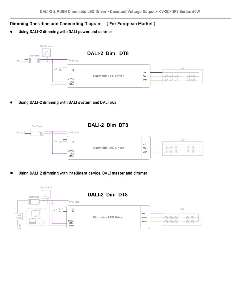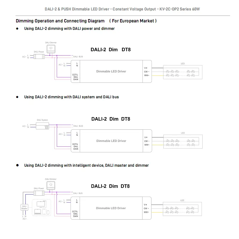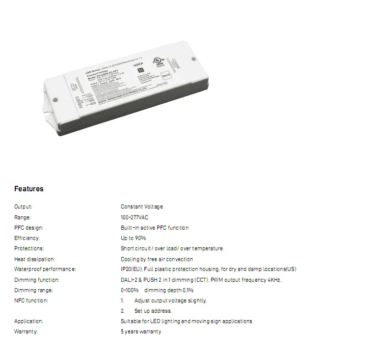 Den är inrymd i en kompakt, flamskyddad låda och passar kommersiell belysning inomhus som kontor, hotell och köpcentra. Med pålitlig prestanda och enkel DALI-bussintegration möjliggör den intelligent ljusstyrning och scenhantering, idealisk för högkvalitativa inställbara vit belysningsprojekt.