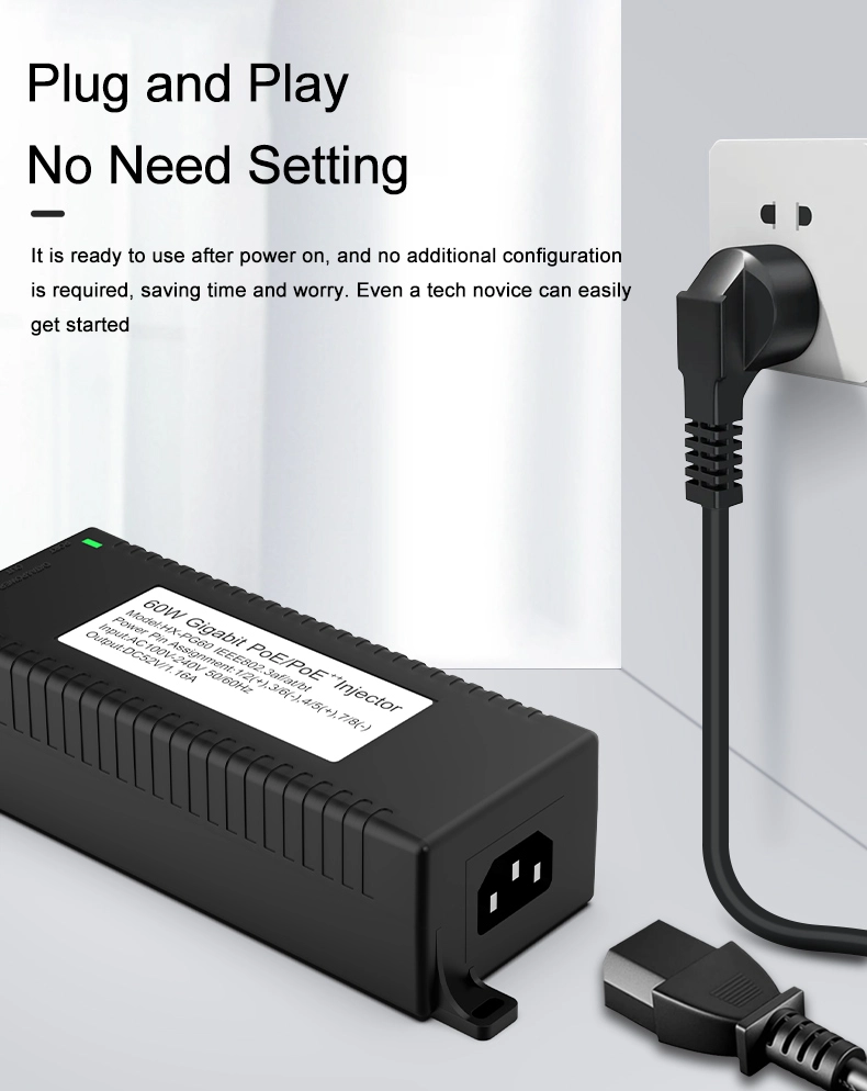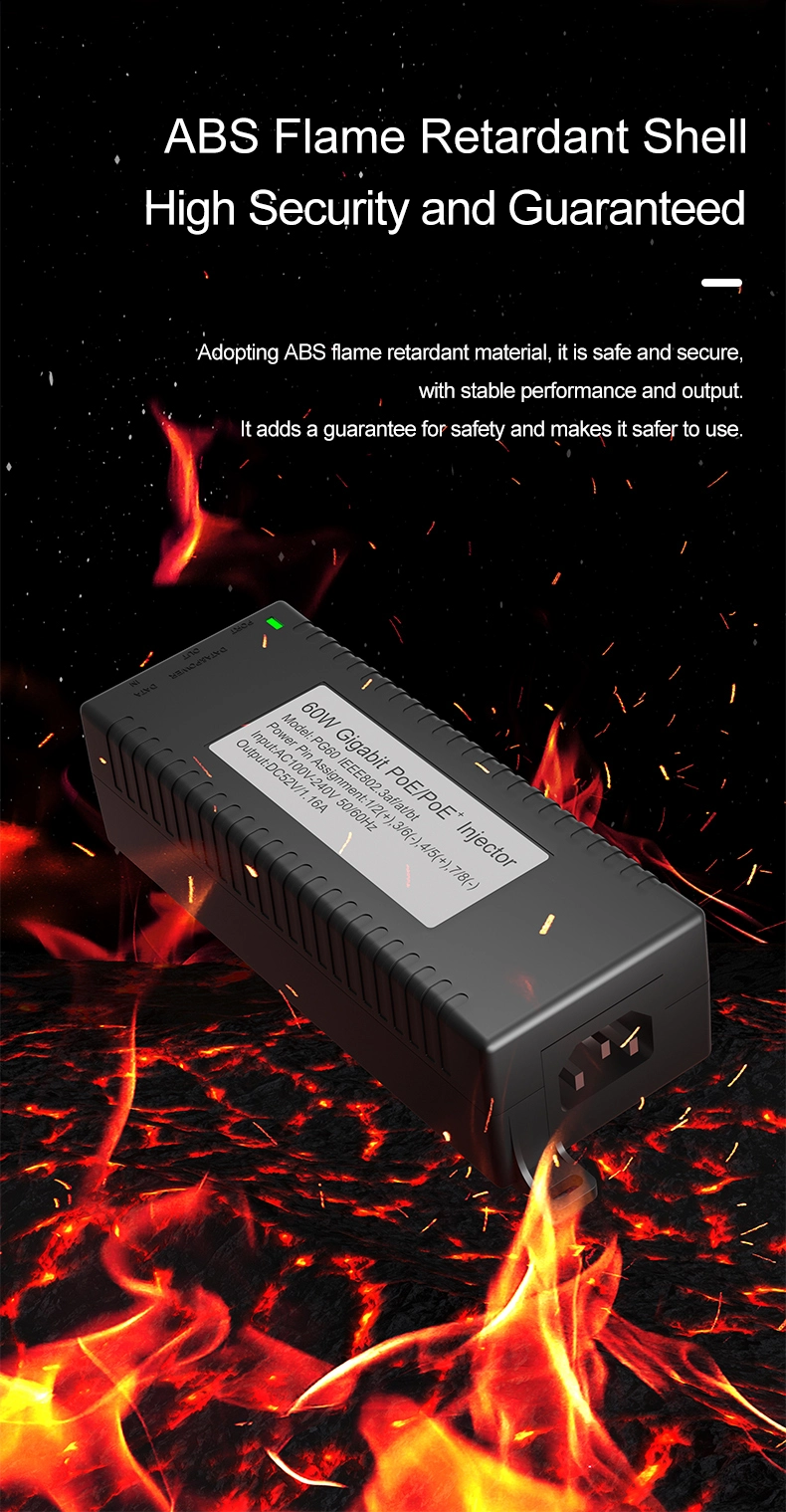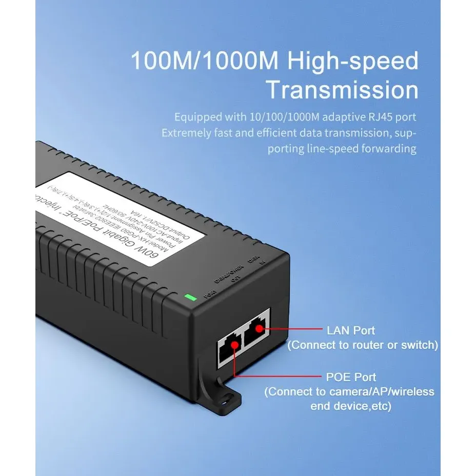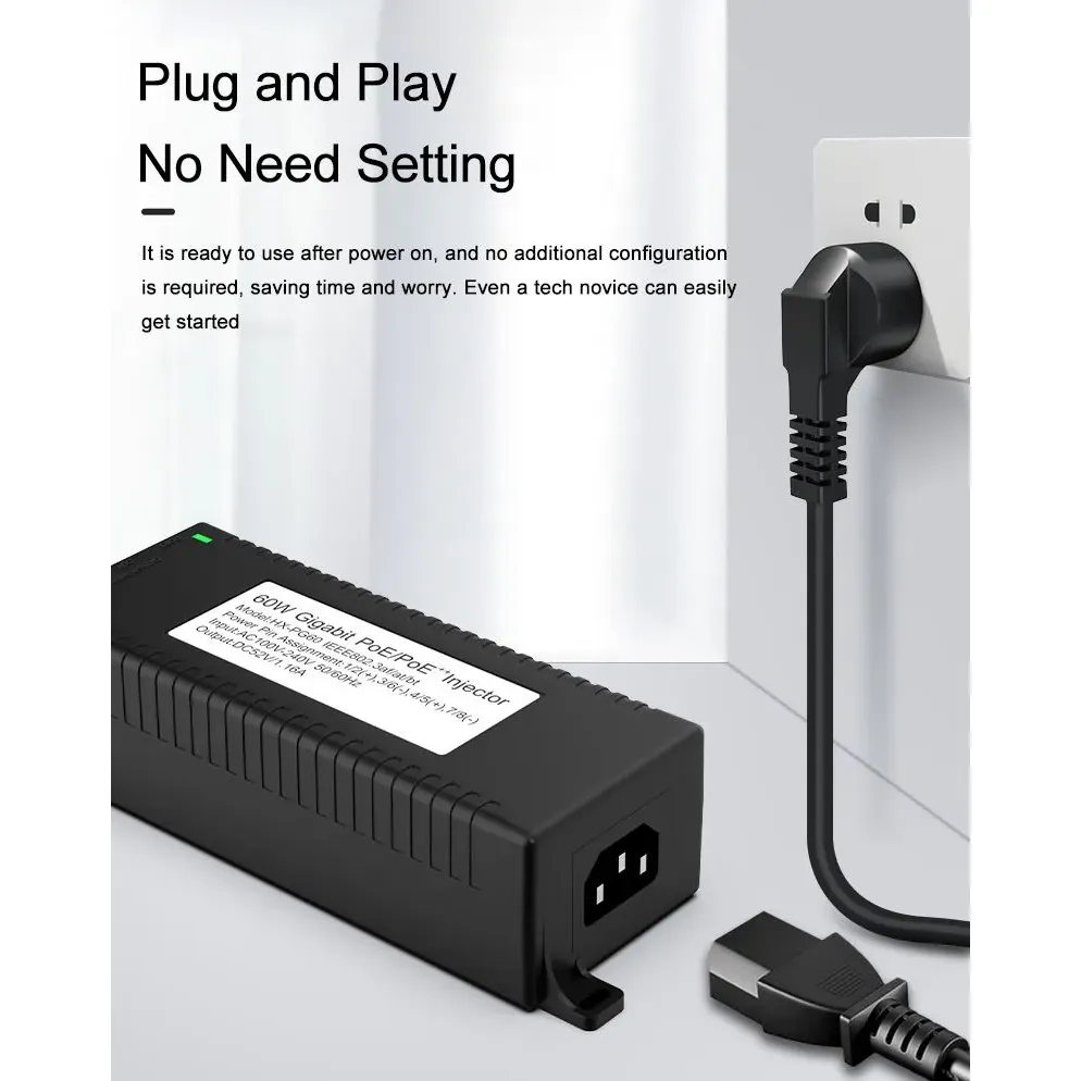 Säkerhetsövervakning: Gigabit 60W stationär POE-injektor för IP-kamerasäkerhet och nätverksenhet ger stabil ström till IP-kameror och PTZ-kameror.