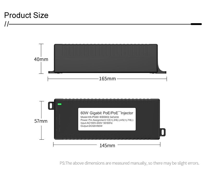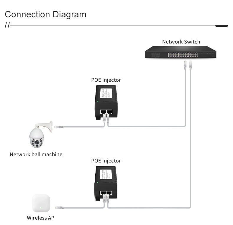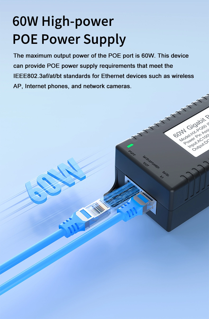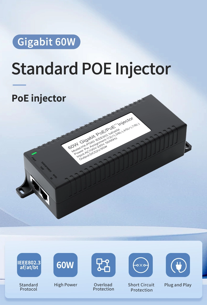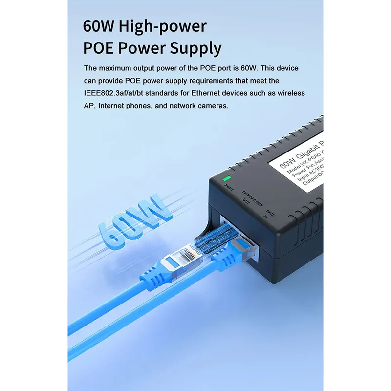 Säkerhetsövervakning: Gigabit 60W stationär POE-injektor för IP-kamerasäkerhet och nätverksenhet ger stabil ström till IP-kameror och PTZ-kameror.