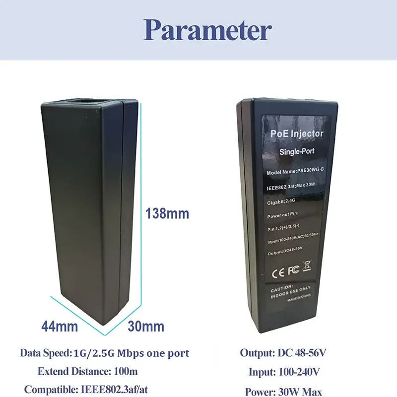 Som en professionell strömförsörjningstillverkare i Kina introducerar Starwell sin 802.3afat 48V 30W 1000Mbps Gigabit Ethernet PoE-injektor. Denna enhet stöder 10/100/1000 Mbps/2,5G auto-förhandling och har flera skyddskretsar mot överström, överspänning och kortslutning. Med ett driftstemperaturområde på -20°C till 50°C är den lämplig för olika nätverksenheter som IP-kameror, trådlösa AP:er och VoIP-telefoner. Produkten har erhållit certifieringar inklusive CE, FCC och RoHS, och kommer med en 3-års garanti.