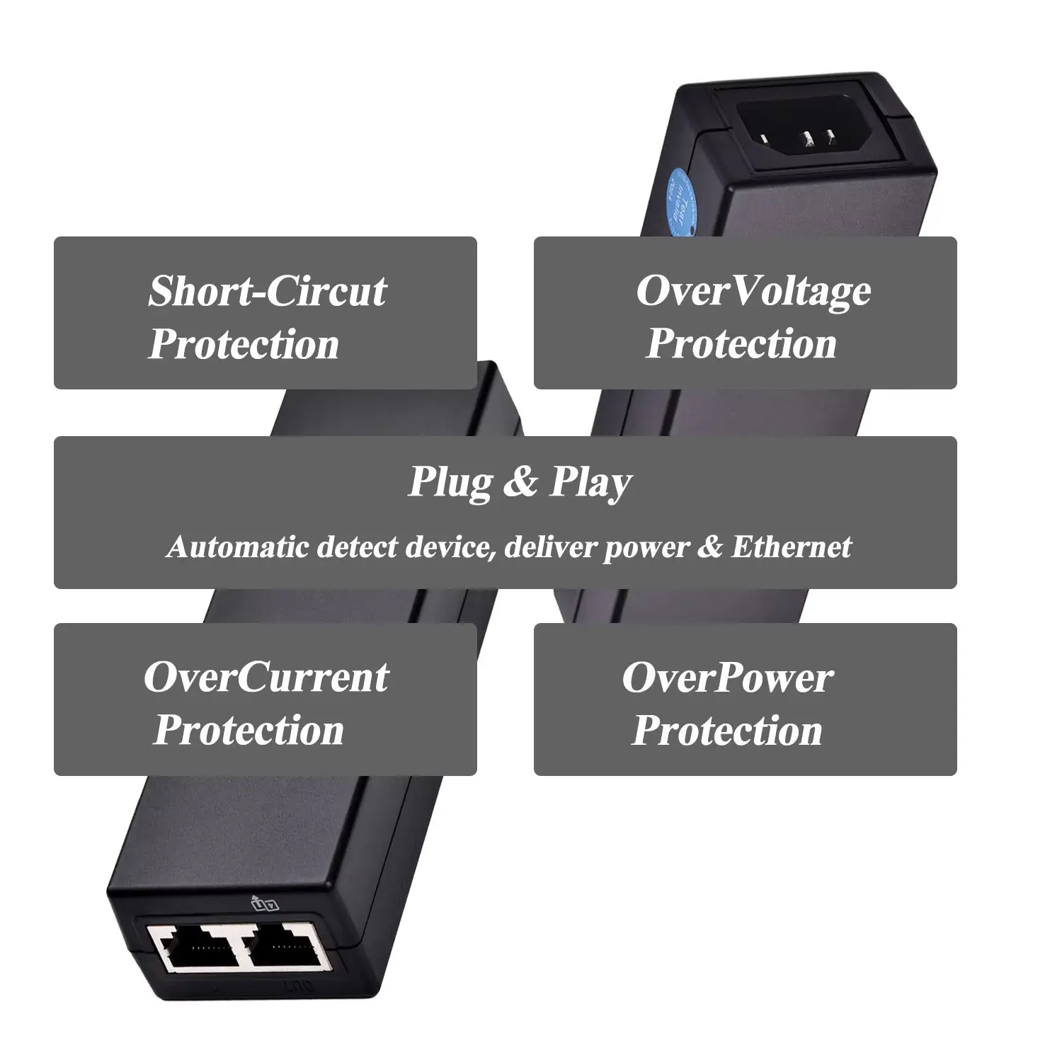 Hög effekt: Stöder upp till 30W uteffekt, strömförsörjer och ansluter effektivt nätverksenheter som IP-kameror, trådlösa AP:er och VoIP-telefoner.