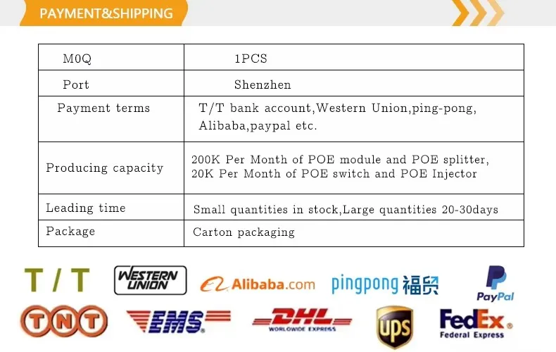* POE-stift: 1,2+/3,6- 4,5+/7,8- * Automatisk upptäckt och skydd av icke-standardiserade Ethernet-terminaler * Stöder 10/100/1000Base-T LAN-miljö * Unik låsfunktion för enkel installation