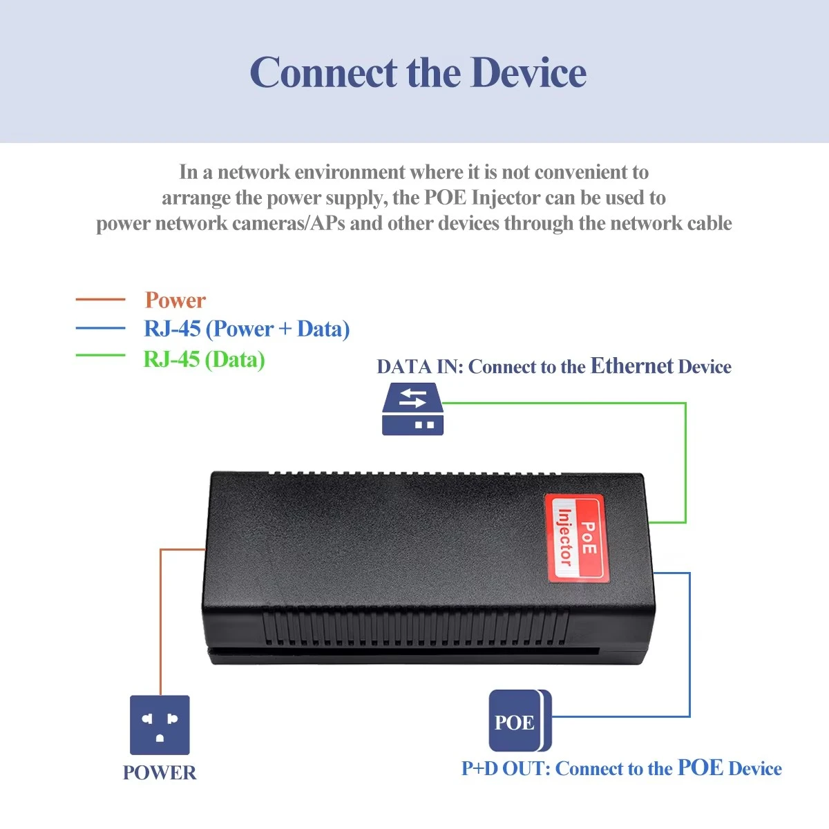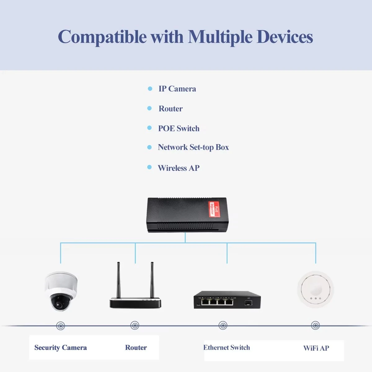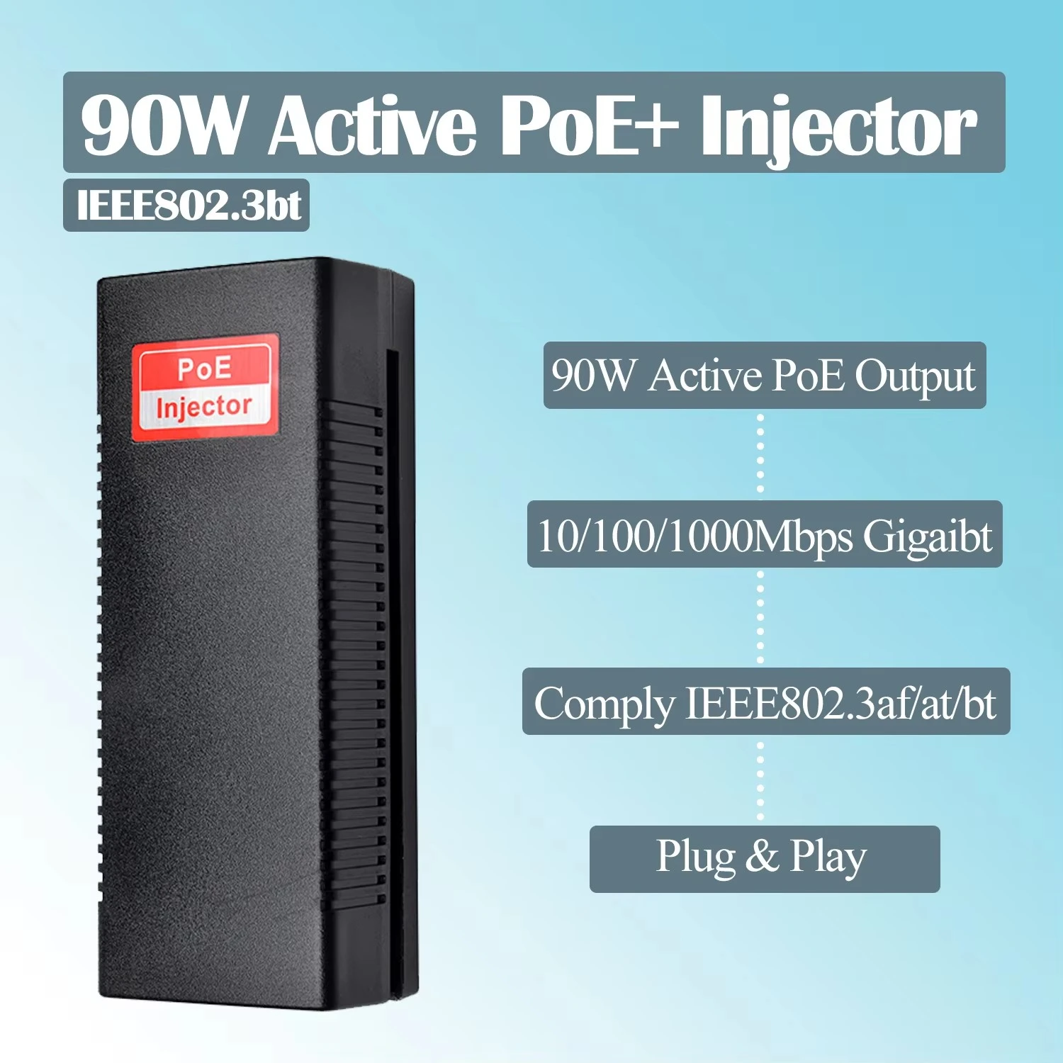 STARWELL OEM PoE Injector Gigabit 48V 90W PoE Injector för IP-kameror är en högpresterande Gigabit Power over Ethernet-lösning (PoE) designad för små till medelstora nätverksmiljöer. Den har: