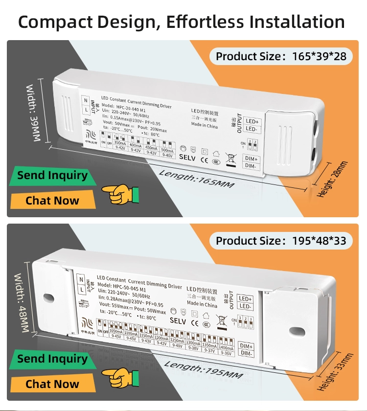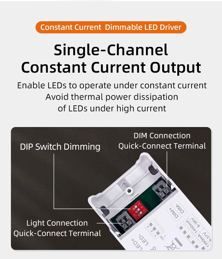 Bred spänning och hög effektkompatibilitet för starkare anpassningsförmåga: Den maximala utspänningen från Stawell konstant ström 0-10V dimmande LED-drivrutin är 50 volt och den maximala uteffekten är 20 watt. Den kan vara kompatibel med 3 till 15 seriekopplade LED-band, och är lämplig för olika LED-belysningsprodukter med en effekt på 20 watt eller mindre, såsom spotlights, downlights och panelljus etc. Ingen ytterligare drivrutinsmatchning krävs, vilket minskar urvalet och applikationskostnaderna.