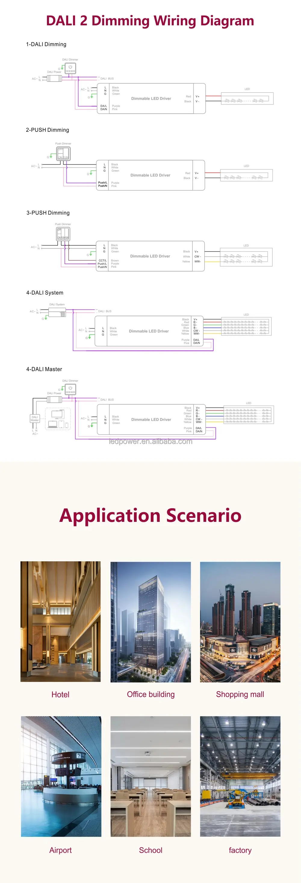 Intelligent Dual Color Temperature Control: Dali Constant Voltage 200W CCT dimbar LED-drivrutin integrerar CCT-färgtemperaturjustering, så att användarna fritt kan justera ljusets värme eller svalka inom ett förinställt färgtemperaturområde (t.ex. 2700K-6500K) via DALI-gränssnittet. I kombination med brett ljusreglering uppnår den en mjuk övergång från varmgul till kallvit.