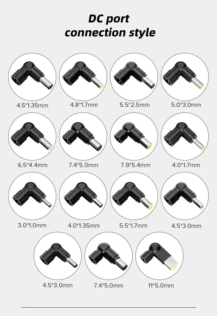 Konstruerad för tillförlitlig och effektiv strömomvandling, omvandlar denna 65W bordsadapter sömlöst växelström (AC) från vanliga vägguttag till stabil likström (DC), vilket tillgodoser strömbehovet för ett brett utbud av elektroniska enheter.