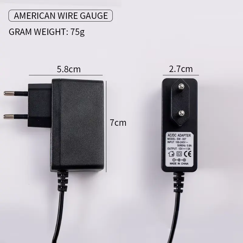 12V 1,5A väggmonterad strömadapter - Detaljerad beskrivning