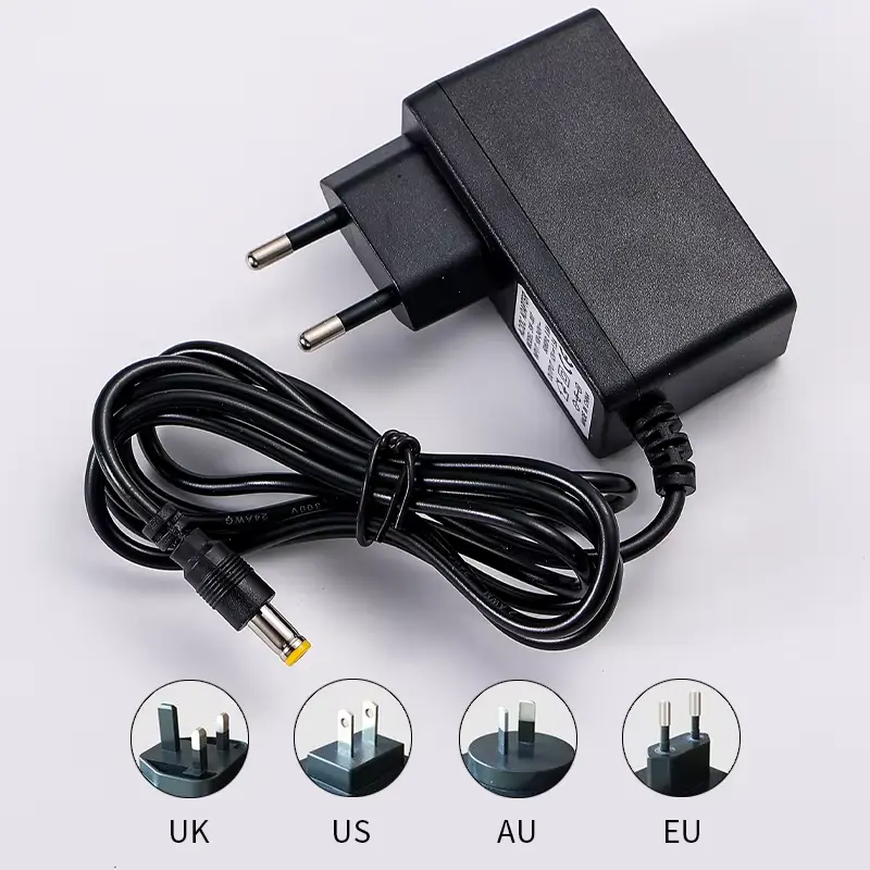 Dess väggmonterade formfaktor sparar utrymme och eliminerar kabeltrassel genom att ansluta direkt till ett vägguttag. En standard DC-utgångskabel med en gemensam kontakt (t.ex. 5,5 mm x 2,1 mm pipplugg, centerpositiv är typiskt) tillhandahålls för enkel anslutning.