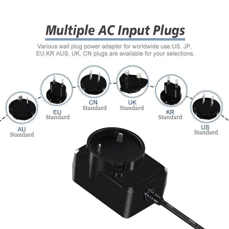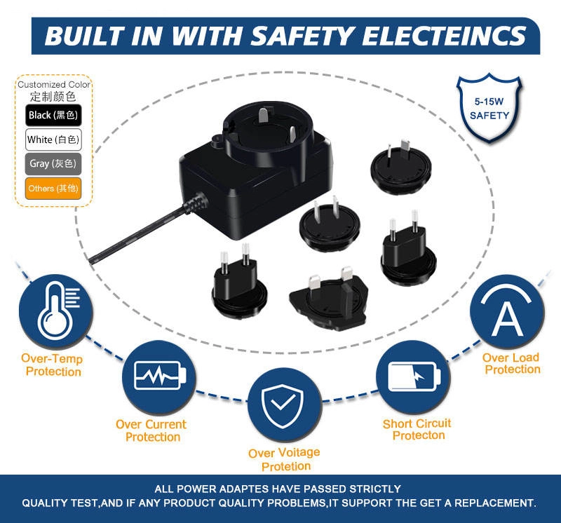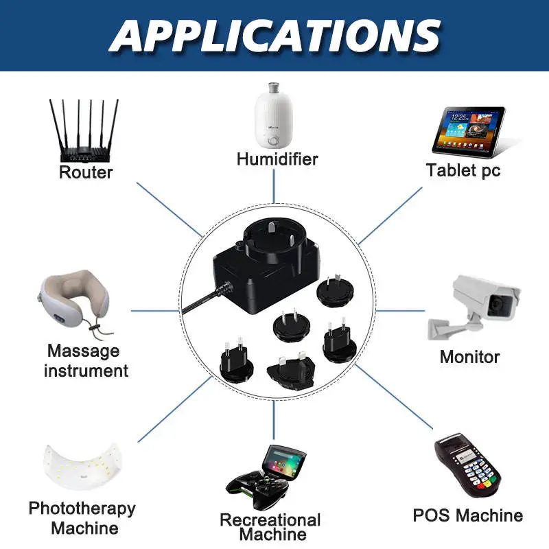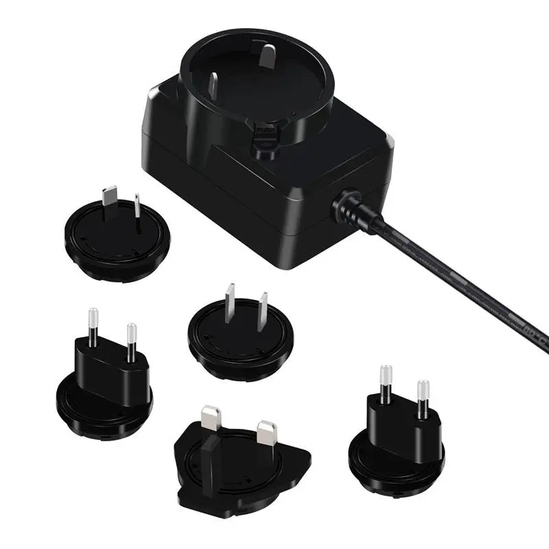Starwells högkvalitativa nätadapter för utbytbar kontakt är en mångsidig och bärbar enhet utformad för att omvandla växelström (växelström) från ett vägguttag till stabil lågspänningslikström (likström) som krävs av ett brett utbud av elektroniska enheter. Dess definierande funktion är en uppsättning löstagbara och utbytbara pluggar (ofta kallade "AC-pluggar" eller "ingångsblad") som överensstämmer med olika internationella uttagsstandarder.