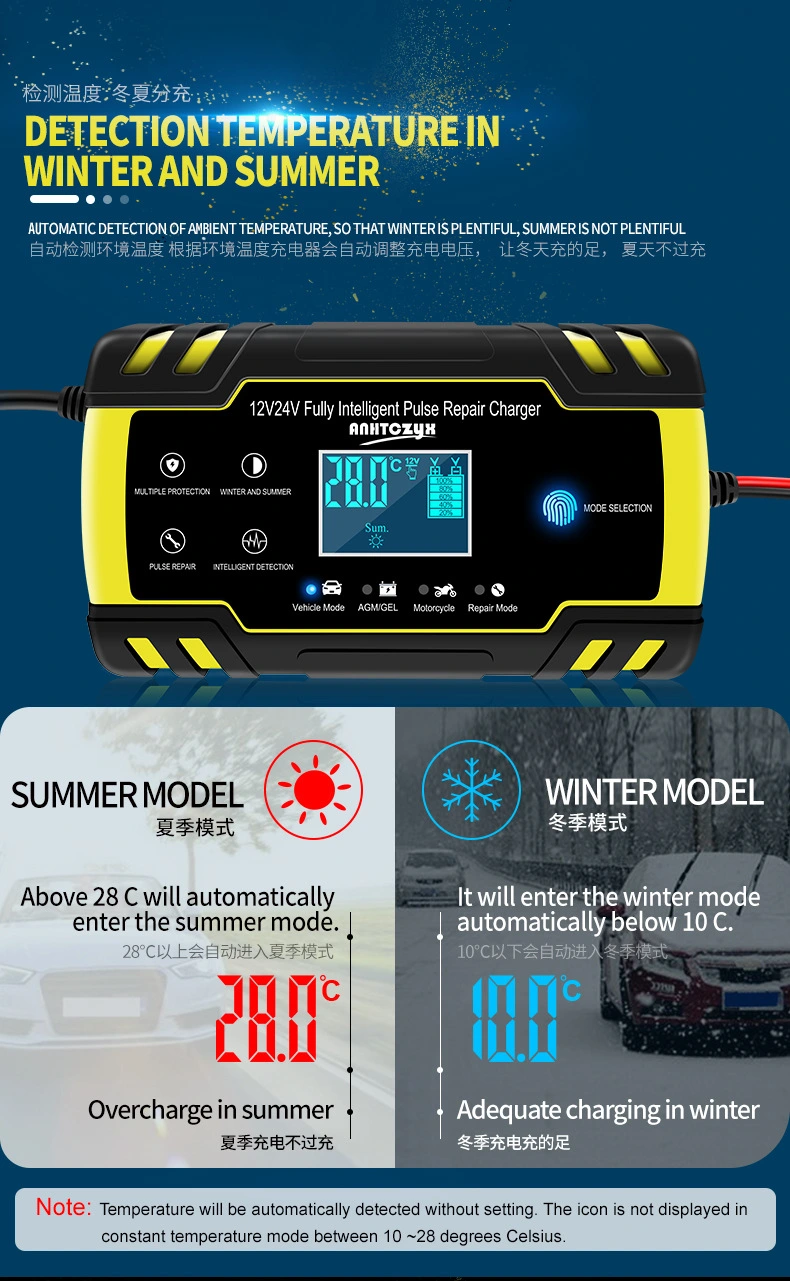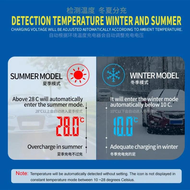 · Autounderhållsläge: Fungerar som underhållsladdare och långvarig batterihållare, perfekt för säsongsbetonade eller sällan använda fordon.