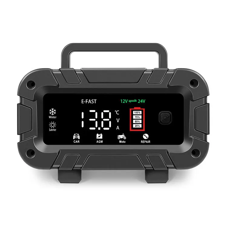 TK700 Universal 12V 24V blybatteriladdare från Starwell, en professionell tillverkare och leverantör i Kina, är ett högpresterande intelligent laddningssystem designat för ett brett utbud av blybatterier. Den är byggd för fordons-, marin-, industri- och nödkraftsapplikationer och kombinerar automatisk spänningsdetektering, avancerad reparationsteknik och stabil utgångskontroll för att säkerställa tillförlitlig energiåterställning och långvarigt batteriunderhåll. TK700 Universal 12V 24V blybatteriladdare är konstruerad för att leverera både snabbladdning och djupunderhåll i en kompakt enhet.