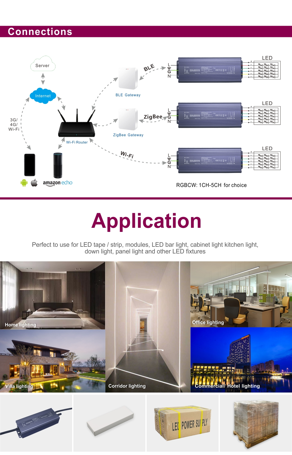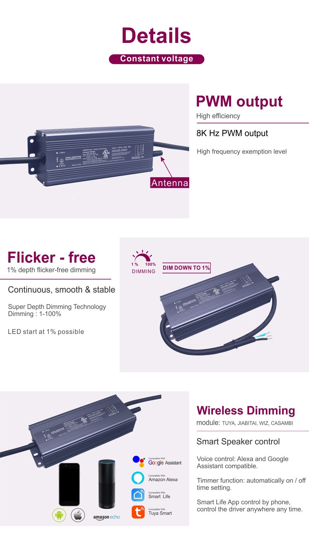 Djupt integrerad med Tuya Smart-ekosystemet, denna Tuya Zigbee Wireless Dimming Constant Voltage 120W LED-drivrutin använder det senaste Zigbee 3.0-kommunikationsprotokollet för sömlös tvåvägskommunikation.