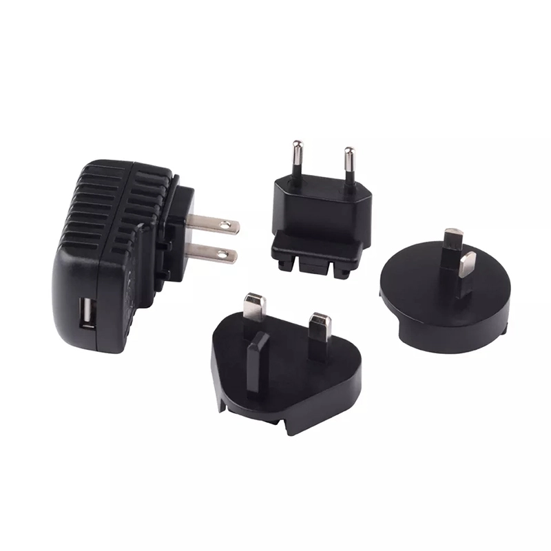 5V 2A universell USB A-port laddare strömadapter med utbytbar AC-kontakt |